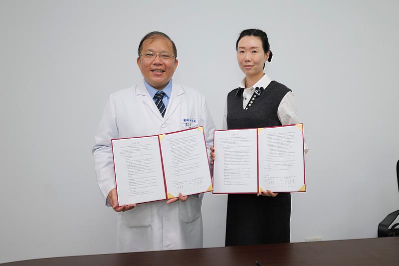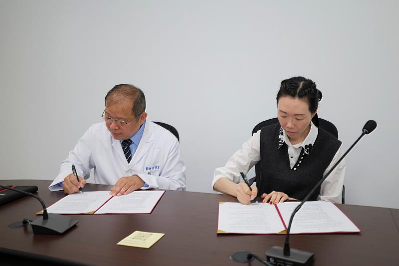 雲科大人科學院教育科技研究中心主任吳婷婷與成大醫院斗六分院院長何宗憲簽署合作意向書。