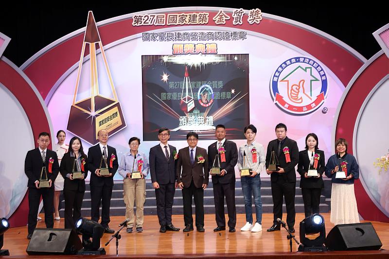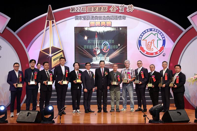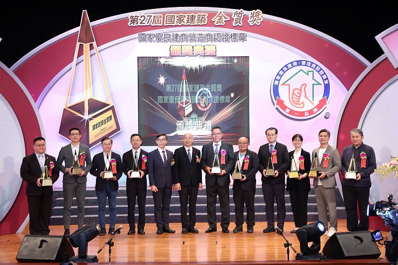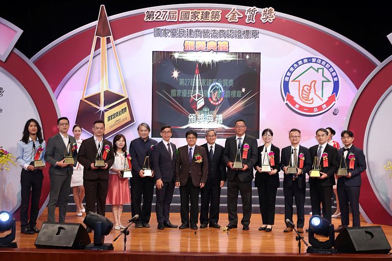 (中央社訊息服務20251017 09:47:54) 國內最具權威、規模最盛大的企業、建築獎項「第27屆國家建築金質獎.國家優良建商營造商認證標章」頒獎典禮10/16晚上7時於公務人力發展中心卓越堂盛大舉行,為每年全國營建業的盛會,典禮當天產、官、學界菁英代表齊聚一堂,共同見證這歷史性的時刻。