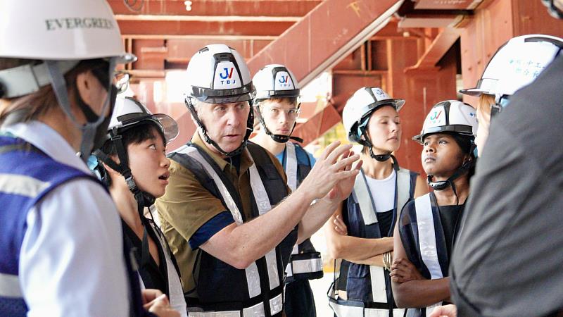 在現場參訪中,團隊重點觀摩了C1與D1兩棟鋼骨結構工程亮點,並由專案團隊詳細說明設計與施工整合的挑戰。訪團成員對於雙塔結構如何兼顧抗震性能與地下交通樞紐整合表示高度興趣,特別關注鋼構系統在超大尺度工程中的精度控制、耐震細節與施工工法的創新應用。