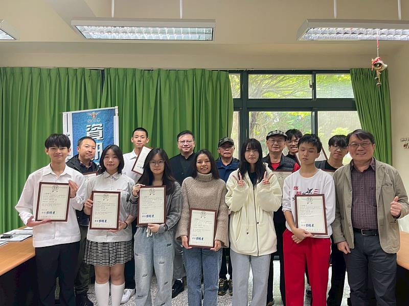 「發現開南之美」影像競賽得獎者合影。秘書室公關組組長趙哲聖指出,本次競賽特別鼓勵社會人士國際新住民,及高中生參與,讓創作成為認識大學、連結城市的起點,「希望透過影像,讓更多年輕世代走進開南、理解桃園,感受校園與城市共同成長的能量。」