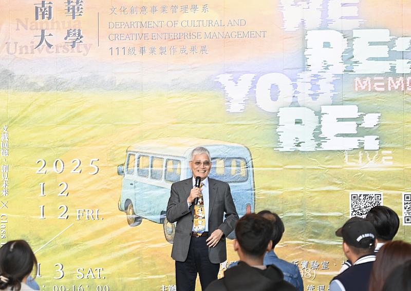 (中央社訊息服務20251220 11:27:26) 南華大學文化創意事業管理學系111級畢業專題展《We Re: member; You Re: live》,於12月13日圓滿落幕,為期兩天的活動吸引校長及300多位師生、系友與校內外貴賓參與。該展覽透過創意展演與互動體驗,共同回望文創系的學習軌跡與成長故事。