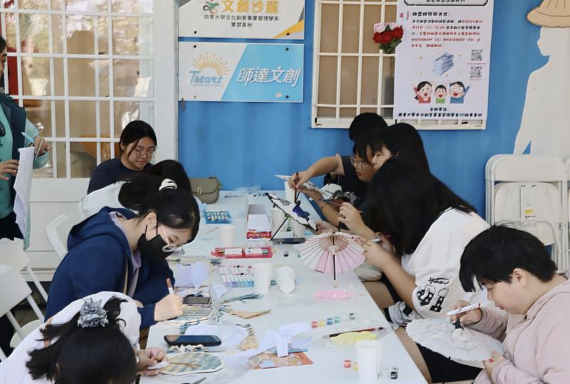 南華大學文創系舉辦畢業展,讓參觀者體驗製作竹扇子。靜態展示區亦設有「文創系教授訪談影像」專區,以多段影片輪播呈現訪談內容。教授們分享文創教育的初衷與教學點滴,並向畢業生獻上祝福。來賓駐足觀賞,系友藉此重溫師生間的情誼,成為展覽中最具溫情的環節。