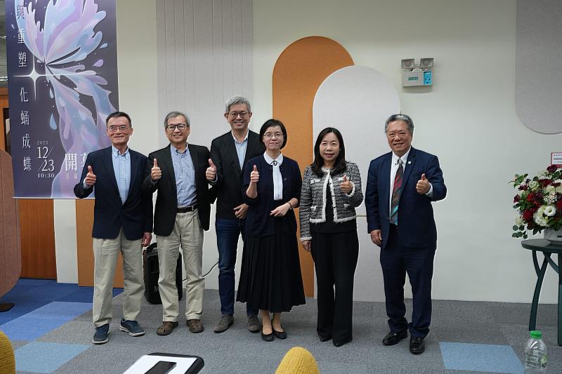 成大圖書館三期空間改造23日正式啟用並舉行開幕活動,與會嘉賓合照。成大吳秉聲助理副校長致詞時先向長期投入圖書館空間改造的團隊表達感謝,並回顧成大圖書館的歷史演進,及其在不同時代所扮演的功能與角色。他指出,成大圖書館一直是知識引進與交流的重要場域,隨著時代的進步、在AI技術蓬勃發展的背景下,實體圖書館的角色也持續被重新定義。