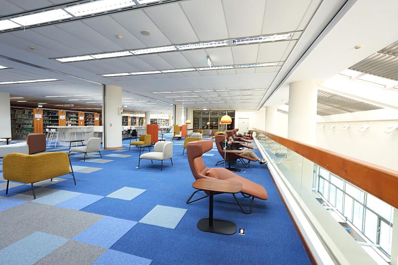 4 樓贈書區調整為更符合讀者閱覽需求的場域,提供多功能閱覽座位及閱讀空間,創造兼具邊界感與舒適度的閱讀環境。承襲第一、二期改造落實「彈性、多元、舒適、適合閱讀」理念的基礎,三期改造透過專業的規劃與設計,回應讀者與社會的期許。4樓贈書區調整為更符合讀者閱覽需求的場域,提供多功能閱覽座位及閱讀空間,創造兼具邊界感與舒適度的閱讀環境,增進讀者沉浸式閱讀與思考;5樓研究小間全面翻新,並增設靜音艙,提供教師與研究生具備獨立思考、資料撰寫與專注研析的優化環境。