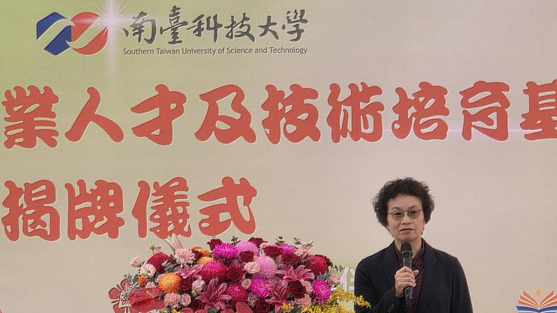 教育部技職司楊玉惠司長致詞,肯定南臺科大獲教育部8,500萬元補助並發揮高度行政效能,期許學校作為智慧微電網技術領域的領頭羊,落實資源共享,帶動跨校整合人才培育。教育導向之實戰場域:從700kW電廠到智慧戰情室