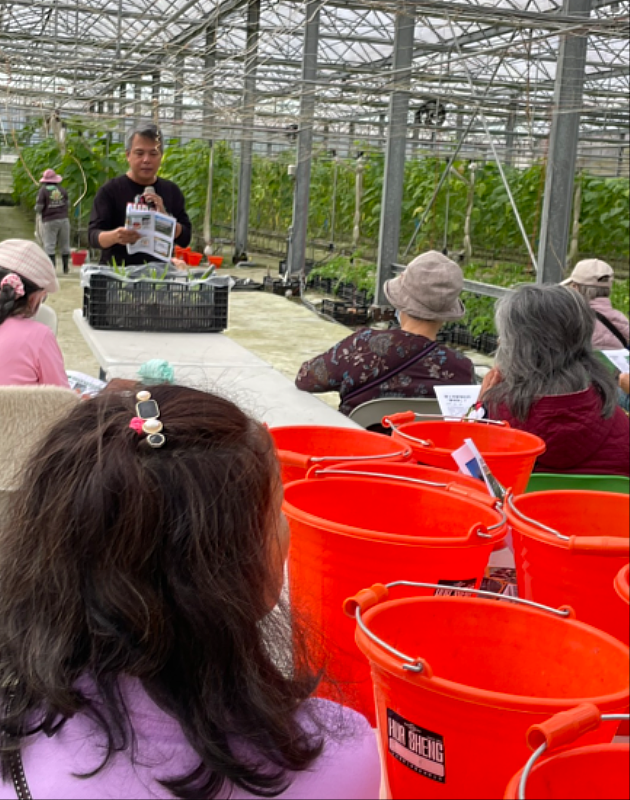 活動現場結合「有機低碳種植理念」、「農業剩餘資材循環再利用」與「光復鄉災後淤泥的轉化再生」等主題進行分享,並導入酵素農法實例,帶領長者體驗水果小黃瓜、芥末菜等高經濟作物的種植與採收。
