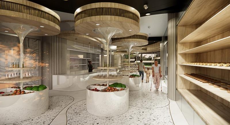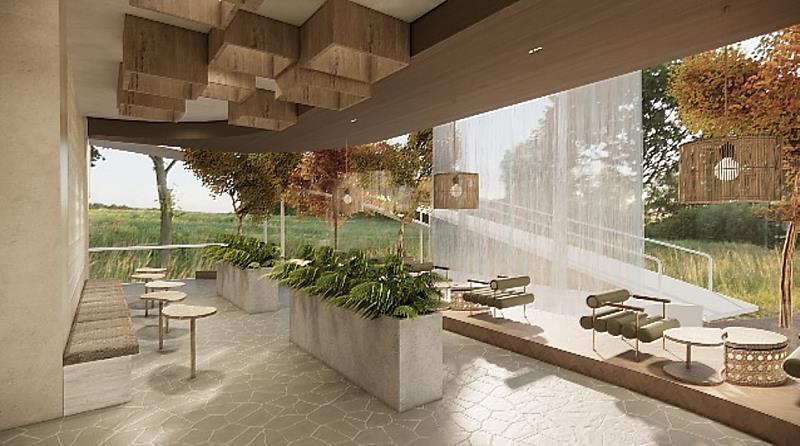 游蕎徽同學的作品《Simile》獲「Winner Award 優勝獎」。她在設計中透過水幕及生態池結合雨水回收系統,促使水循環再利用,並在室內外空間形塑風廊。空間設計運用交錯、垂直與水平、虛與實的變化,映照出未來與現在的時間概念。