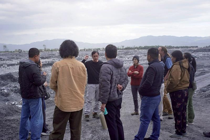 第2站學者們前往馬太鞍溪橋下的泥沙淤積區,眼前綿延不絕的泥沙景象令人震撼,現場大型工程機具持續運作,呈現出災後治理所動員的龐大工程規模。參與學者亦對臺灣在災後水利工程上的動員能力與技術投入表示高度肯定。